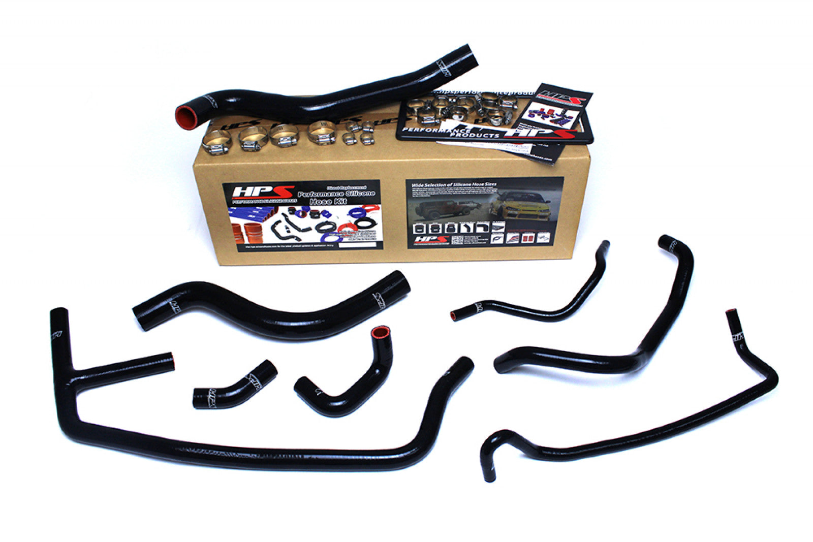 Ford 2015-2019 Mustang Ecoboost 2.3L Turbo HPS High Temp 3-ply Reinforced Silicone Radiator and Heater Hose Kit Black is designed to replace stock OEM rubber hoses which can eventually weaken over time, leading to premature failure. With premium quality silicone and race inspired design, this HPS silicon Radiator and Heater Hose Kit can withstand the harsh high temperature and high pressure operating conditions of the engine yet still maintaining peak efficiency during competition or daily driving. HPS silicone Radiator and Heater Hose Kit has all the correct bends and curves for a perfect fit replacement for your OEM rubber coolant hoses, compare to the universal hoses you can get from the local auto store, HPS hose kit is much easier to work with. Max Temperature Rating: 350 deg. F (177 deg. C). 100% Stainless Steel Clamps are included for easy installation.