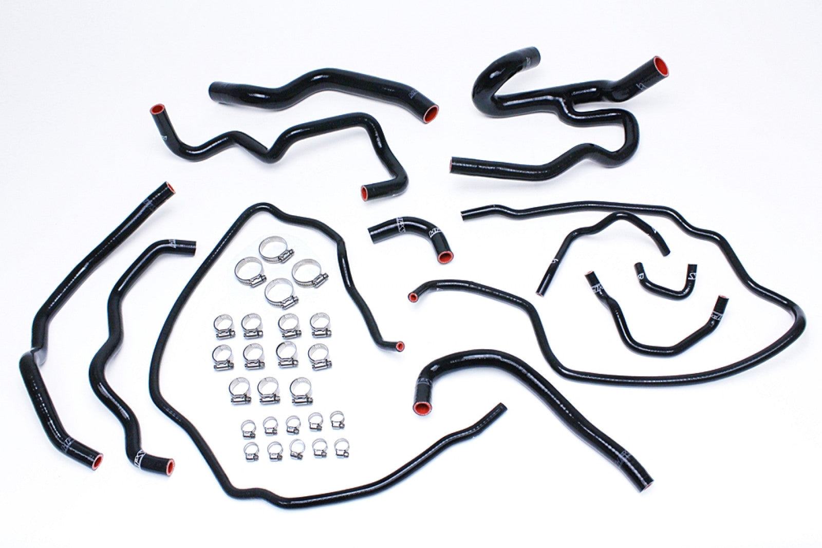 Mazda 07-09 Mazdaspeed 3 2.3L Turbo HPS High Temp 3-ply Reinforced Silicone Radiator + Heater Hose Kit Black is designed to replace stock OEM rubber hoses which can eventually weaken over time, leading to premature failure. With premium quality silicone and race inspired design, this HPS silicon Radiator + Heater hose kit can withstand the harsh high temperature and high pressure operating conditions of the engine yet still maintaining peak efficiency during competition or daily driving. HPS silicone Radiator + Heater hose kit has all the correct bends and curves for a perfect fit replacement for your OEM rubber coolant hoses, compare to the universal hoses you can get from the local auto store, HPS hose kit is much easier to work with. Max Temperature Rating: 350 deg. F (177 deg. C). 100% Stainless Steel Clamps are included for easy installation.