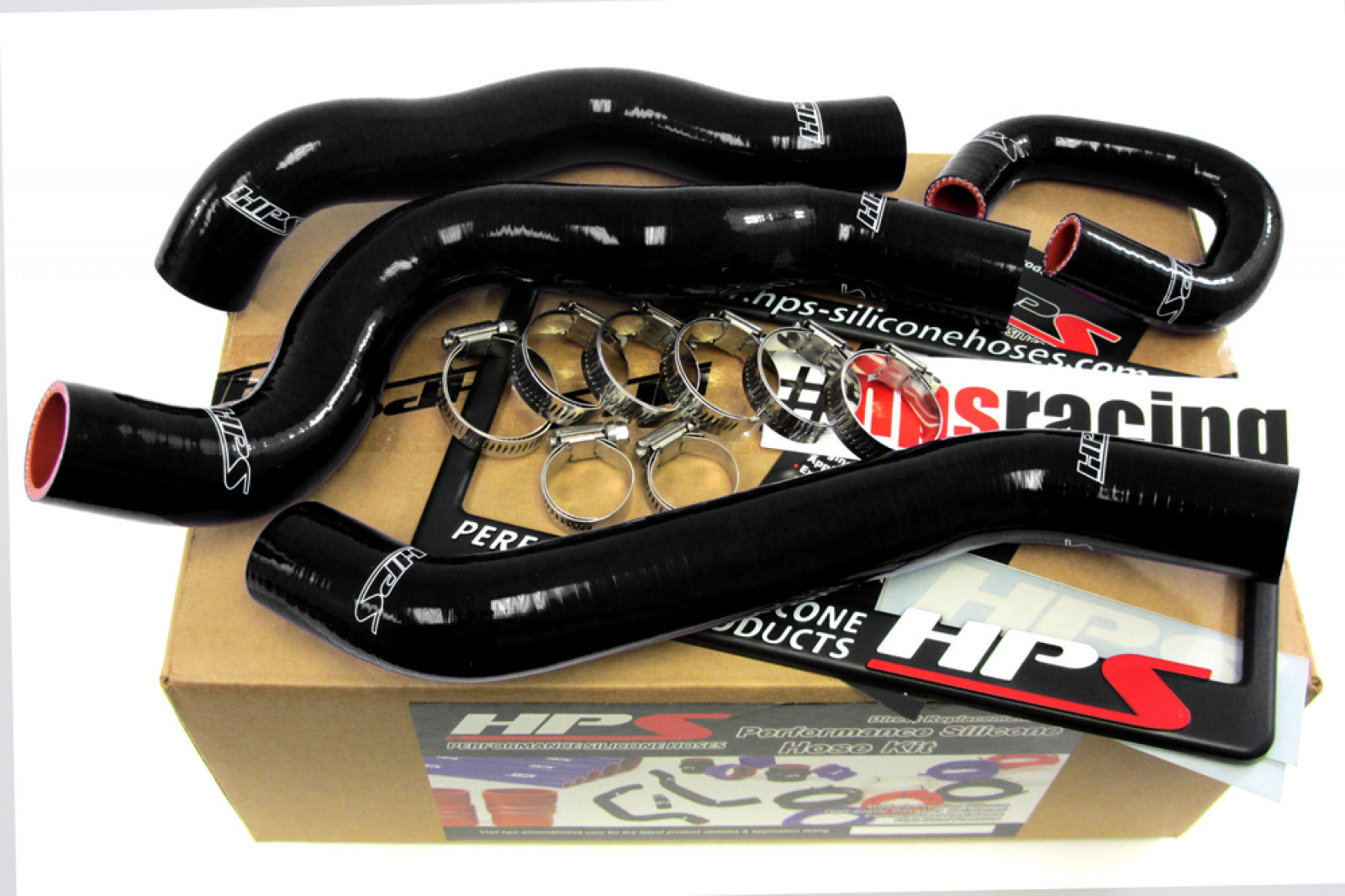 Chevy 08-10 Cobalt SS 2.0L Turbo HPS High Temp 3-ply Reinforced Silicone Radiator Hose Kit Black is designed to replace stock OEM rubber hoses which can eventually weaken over time, leading to premature failure. With premium quality silicone and race inspired design, this HPS silicon radiator hose kit can withstand the harsh high temperature and high pressure operating conditions of the engine yet still maintaining peak efficiency during competition or daily driving. HPS silicone radiator hose kit has all the correct bends and curves for a perfect fit replacement for your OEM rubber coolant hoses, compare to the universal hoses you can get from the local auto store, HPS hose kit is much easier to work with. Max Temperature Rating: 350 deg. F (177 deg. C). 100% Stainless Steel Clamps are included for easy installation.