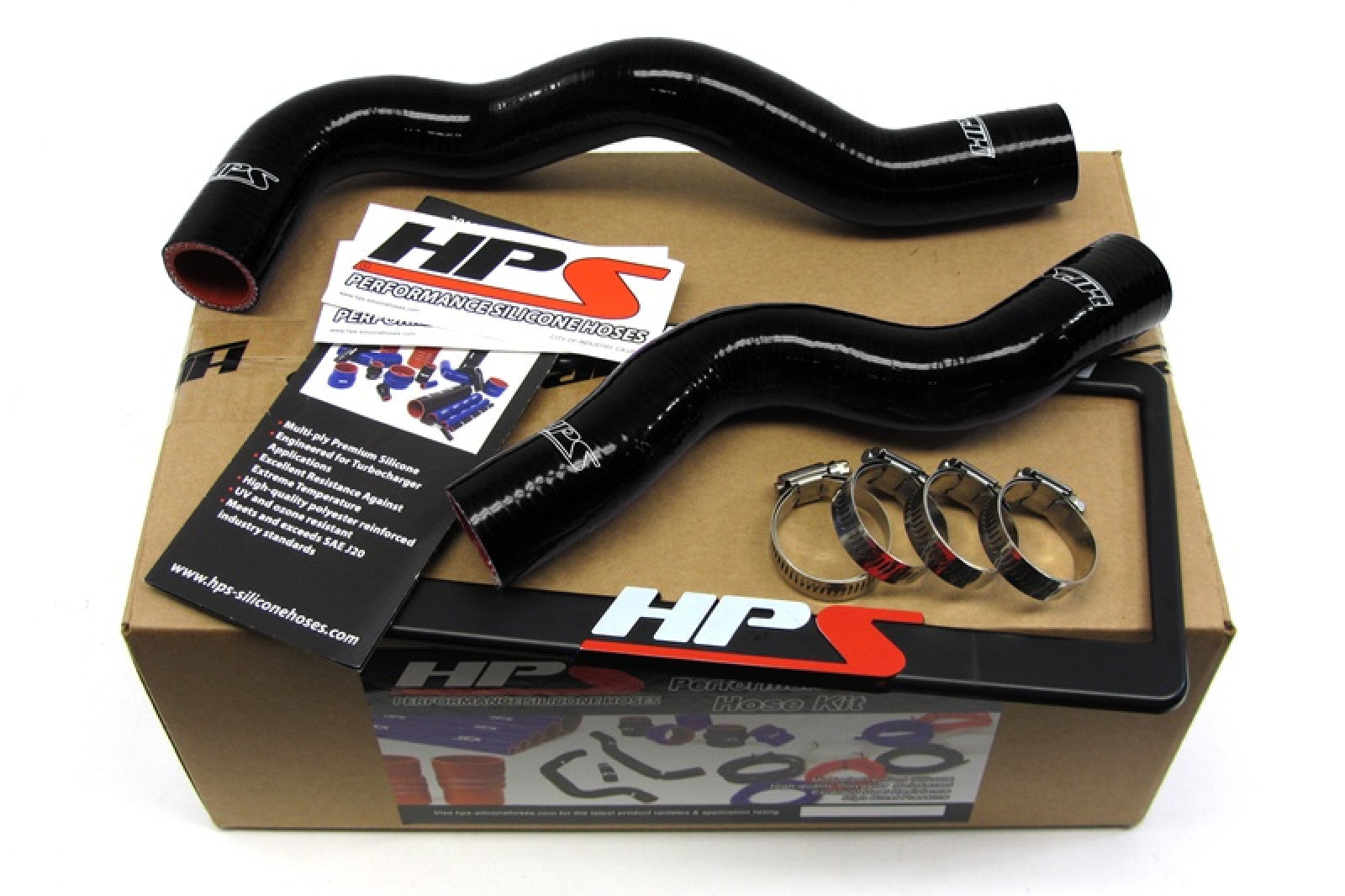 Nissan 02-06 Sentra SE-R / SE-R Spec V HPS High Temp 3-ply Reinforced Silicone Radiator Hose Kit Black is designed to replace stock OEM rubber hoses which can eventually weaken over time, leading to premature failure. With premium quality silicone and race inspired design, this HPS silicon radiator hose kit can withstand the harsh high temperature and high pressure operating conditions of the engine yet still maintaining peak efficiency during competition or daily driving. HPS silicone radiator hose kit has all the correct bends and curves for a perfect fit replacement for your OEM rubber coolant hoses, compare to the universal hoses you can get from the local auto store, HPS hose kit is much easier to work with. Max Temperature Rating: 350 deg. F (177 deg. C). 100% Stainless Steel Clamps are included for easy installation.