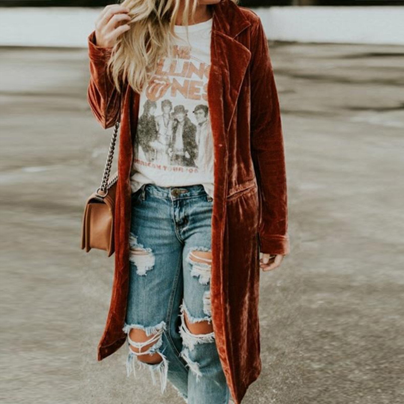 Introducing our Velvet Pockets Midi Jacket, the perfect outerwear for Autumn and Winter! Made from luxurious velvet fabric, this jacket will keep you warm and cozy whilst adding a touch of glamour and charm. With its simple yet stylish design, the Velvet Pockets Midi Jacket is versatile and can be worn with a variety of different outfits. Whether you dress it up with a dress or blouse, or keep it casual with pants, this jacket is a must-have in your wardrobe this season. So don't wait any longer, grab our Velvet Pockets Midi Jacket now!